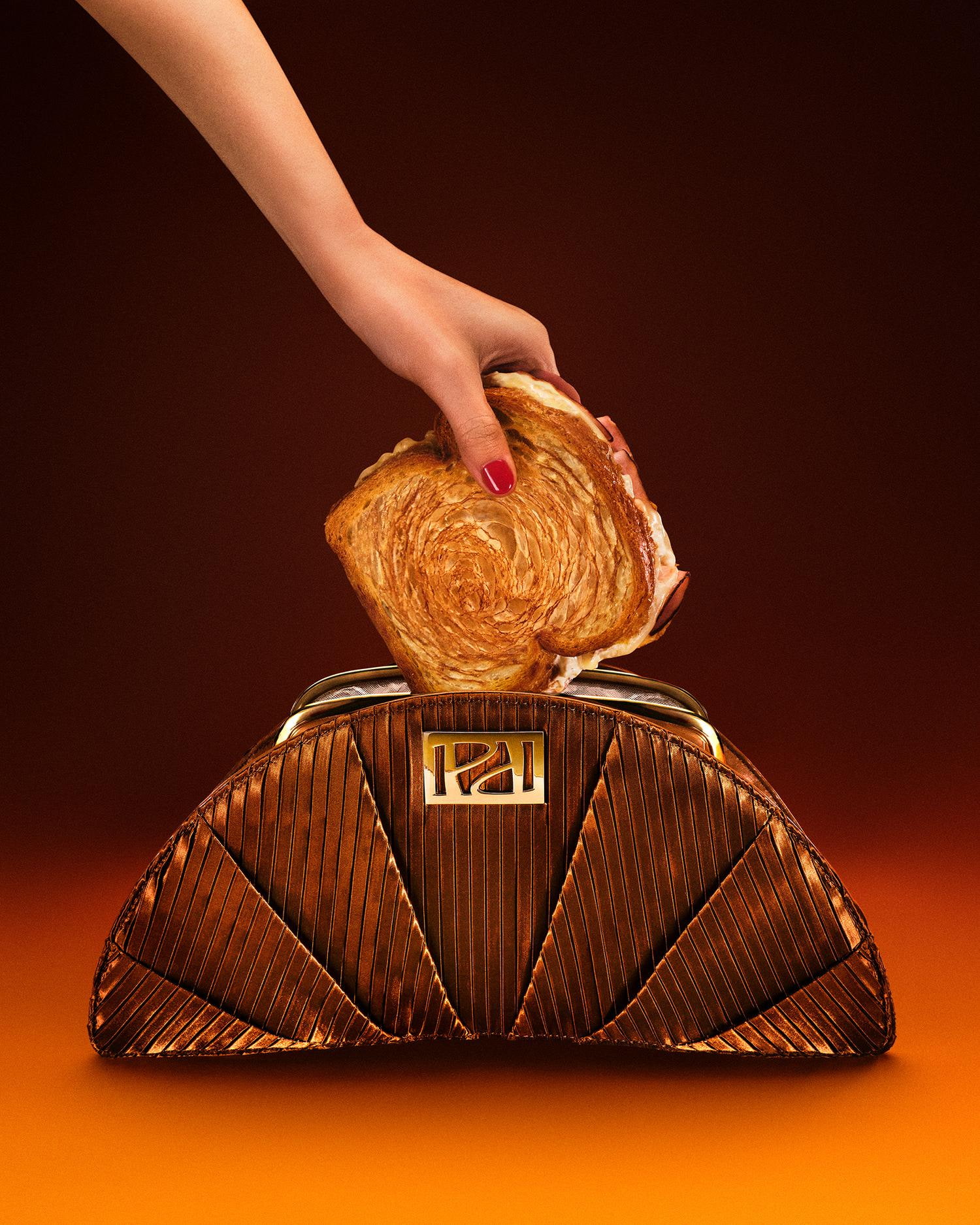 Designed a handbag to keep the new Croissant Toast Sandwich hot for a haute meal at the Met Gala after-parties.